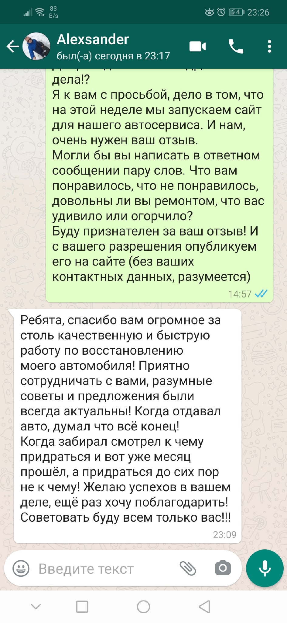 «Мы не любим краснеть перед клиентом. Поэтому, при малейшем недочете со стороны маляра, что бывает крайне редко — мы, НЕ будем скрывать это, а просто переделаем! Наше оборудование, позволяет исправить мелкие недоработки, в течение двух часов »